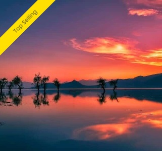 Step into the serene beauty of these peaceful Vales, where the crystal-clear lake waters gently embrace the majestic, towering peaks that encircle them.